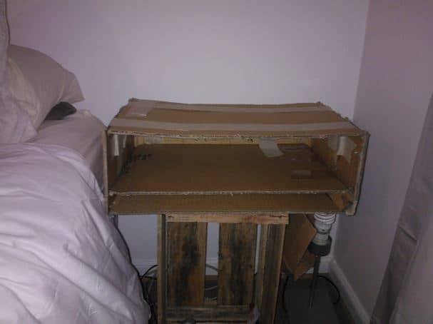 A quick Google search will give you so much inspiration for designing a sturdy pallet bedside table that will hold that all-important brew – with no cardboard in sight! You can design it to fit the size of your space, include drawers or open shelves, or make it into a quirky shape. Here are some of our favourites: