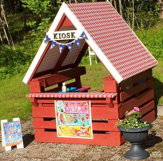 Wendy houses and mud kitchens are also hugely popular and they can easily be created using pallet wood. Here are some general step-by-step instructions on how to create your own pallet playhouse or mud kitchen, but there are literally endless layouts and designs that you can adapt to suit. You could make a Wendy house with a porch or slide incorporated into it, paint it with your children’s favourite characters, or design it with a specific theme in mind such as an ice cream parlour or sweet shop!