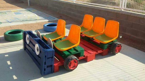 But here goes… if you’re looking for something relatively simple and easy to make then the pallet sandpit or pallet car are great options. These can be adapted or personalised however you like – you could paint the sides of the sandpit with road markings and add your children’s favourite digger toys to the sandpit to make it look like their very own construction site! Other great alternatives include building a sandpit with bench seating (some of these creations even fold down to create a sandpit lid). The pallet car is such a fun and unique invention, which can again be personalised to suit your family. If you’d really like to challenge your carpentry skills, why not take a look at this intricate, life-like pallet car design? There are some imaginative play pallet petrol stations that you could build to accompany your car too! Of course a car doesn’t have to be the only vehicle of choice; you could try a pallet tractor, bus, train or even a boat instead.