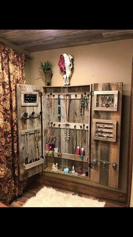 Never have to worry about tangled necklaces and missing earrings again! This display cabinet is a real statement piece and is a perfect way of neatly organising all of your jewellery items. If you’d prefer something smaller and a little bit easier than the example shown above, you could always keep the pallet intact (like this example) and then simply decorate with beautiful hooks, lighting or other pretty accessories.