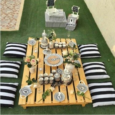 Pallets might also be a great option for celebrating our next outdoor event. Outdoor picnic tables could be a great addition to a birthday, baby shower, and engagement party. They are not only eco-friendly but also affordable. These tables can be easily constructed using recycled pallets and a few basic tools. You can customise them to fit the theme of your event by painting them in different colours or adding decorative elements. They are perfect for outdoor gatherings, offering a rustic and cosy ambience. If you want an inexpensive way to elevate your event, consider making your own pallet wood picnic tables. Here are some great examples;