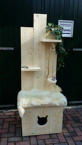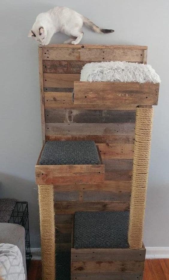 Like conversational pet beds, cat trees provide a tall structure where cats can relax and feel comfortable. Creating your own cat tree using pallets is an excellent alternative, as it provides flexibility in terms of height and the number of platforms, and is more affordable than purchasing one from a store. Check out our favourites below!