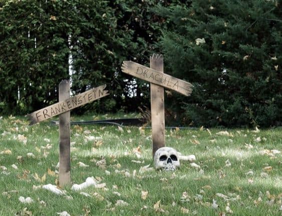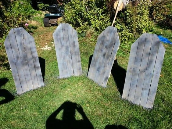 Pallet wood is fantastic for creating creepy characters that can lurk in your lawn. Cut out spooky silhouettes like ghosts, zombies, or witches from the wood and paint them with eerie colours. Alternatively, turn your front lawn into a graveyard for the night with some pallet wood tombstones. Stake them into the ground for a bone-chilling effect. Illuminate them with battery-operated LED lights for an added layer of spookiness.